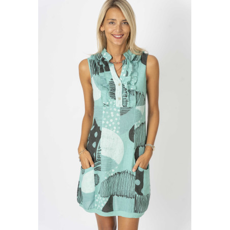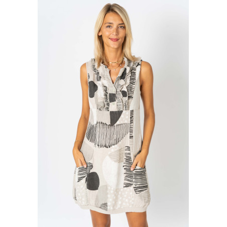 "Circle Print" Linen Dress